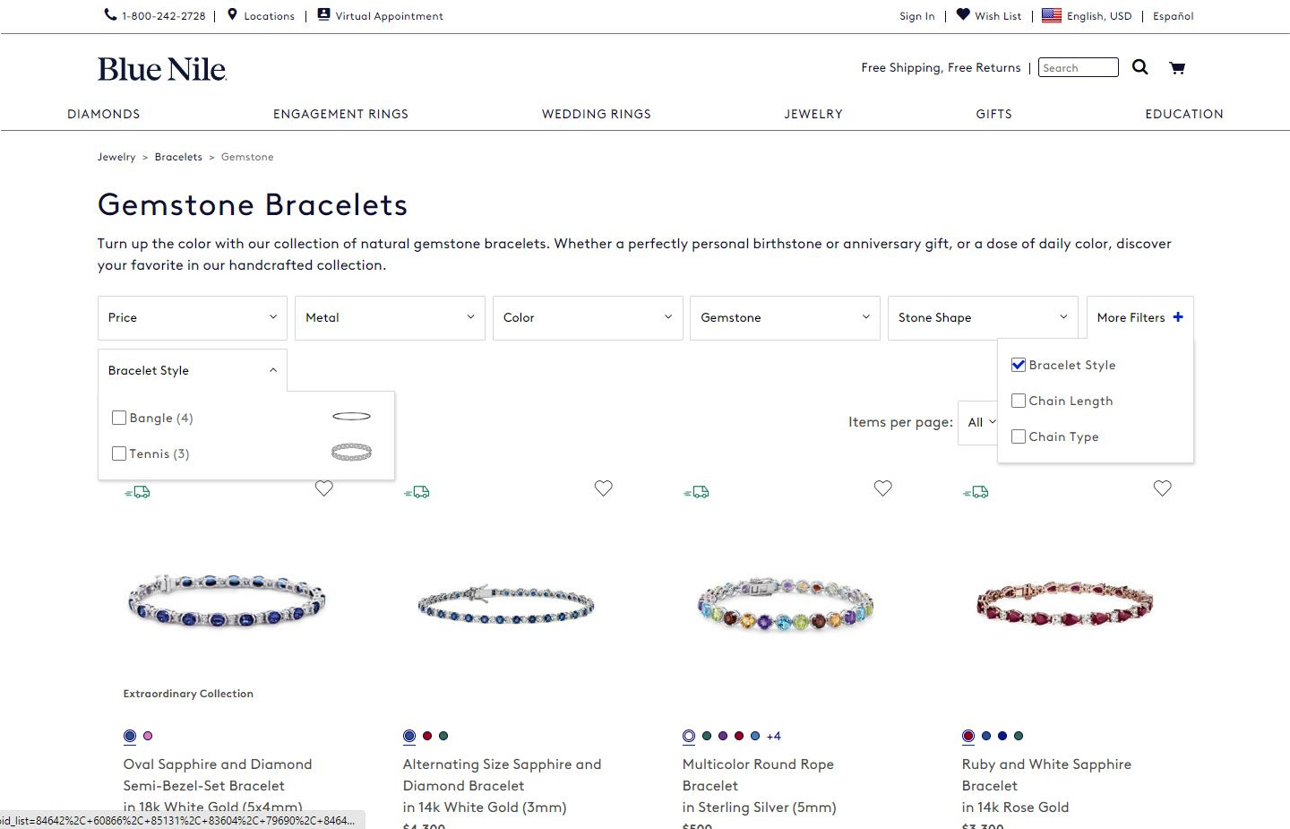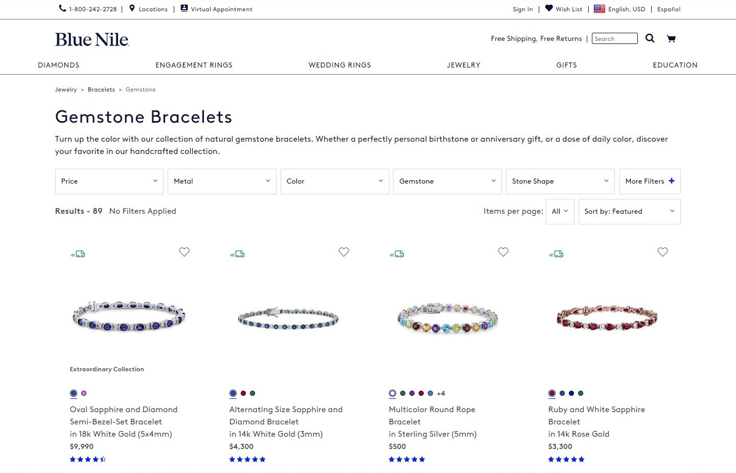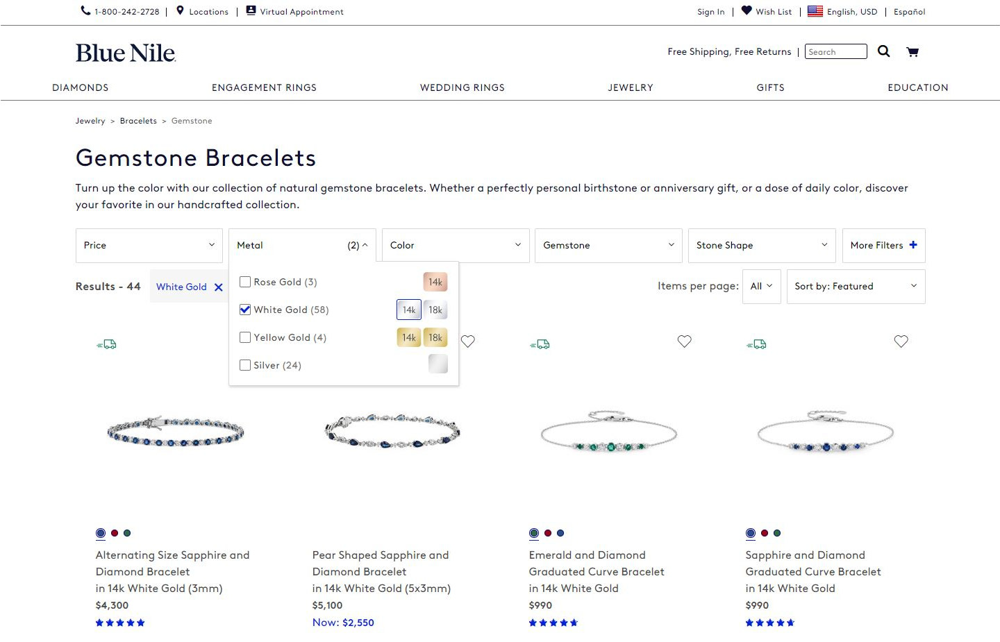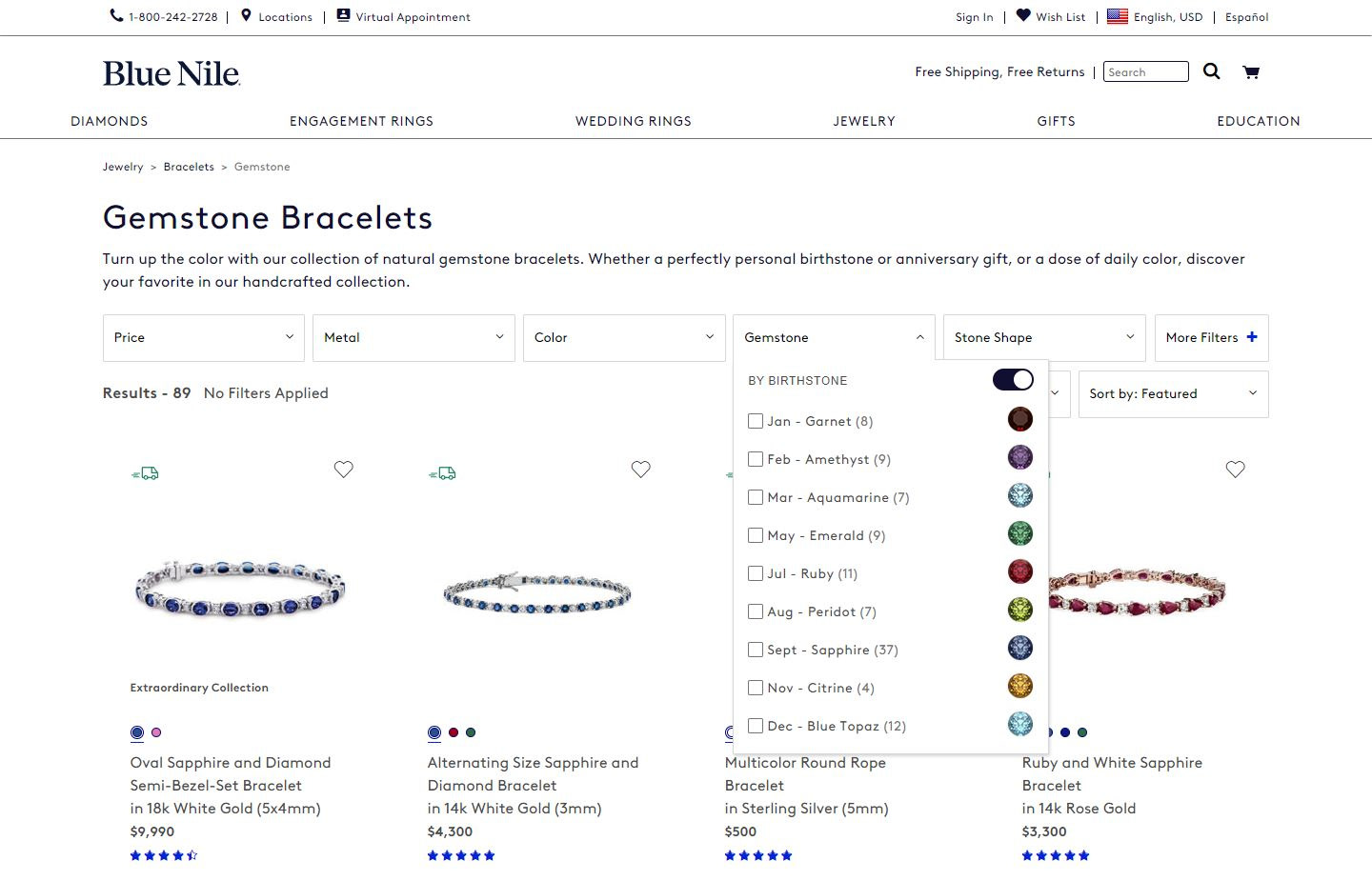Updating our product filters was an opportunity for Blue Nile to again demonstrate our dedication to our customers by making it faster and easier for our users to find what they were looking for. This would also benefit our brand by creating significant improvements in click-through rates, conversions, and brand loyalty.