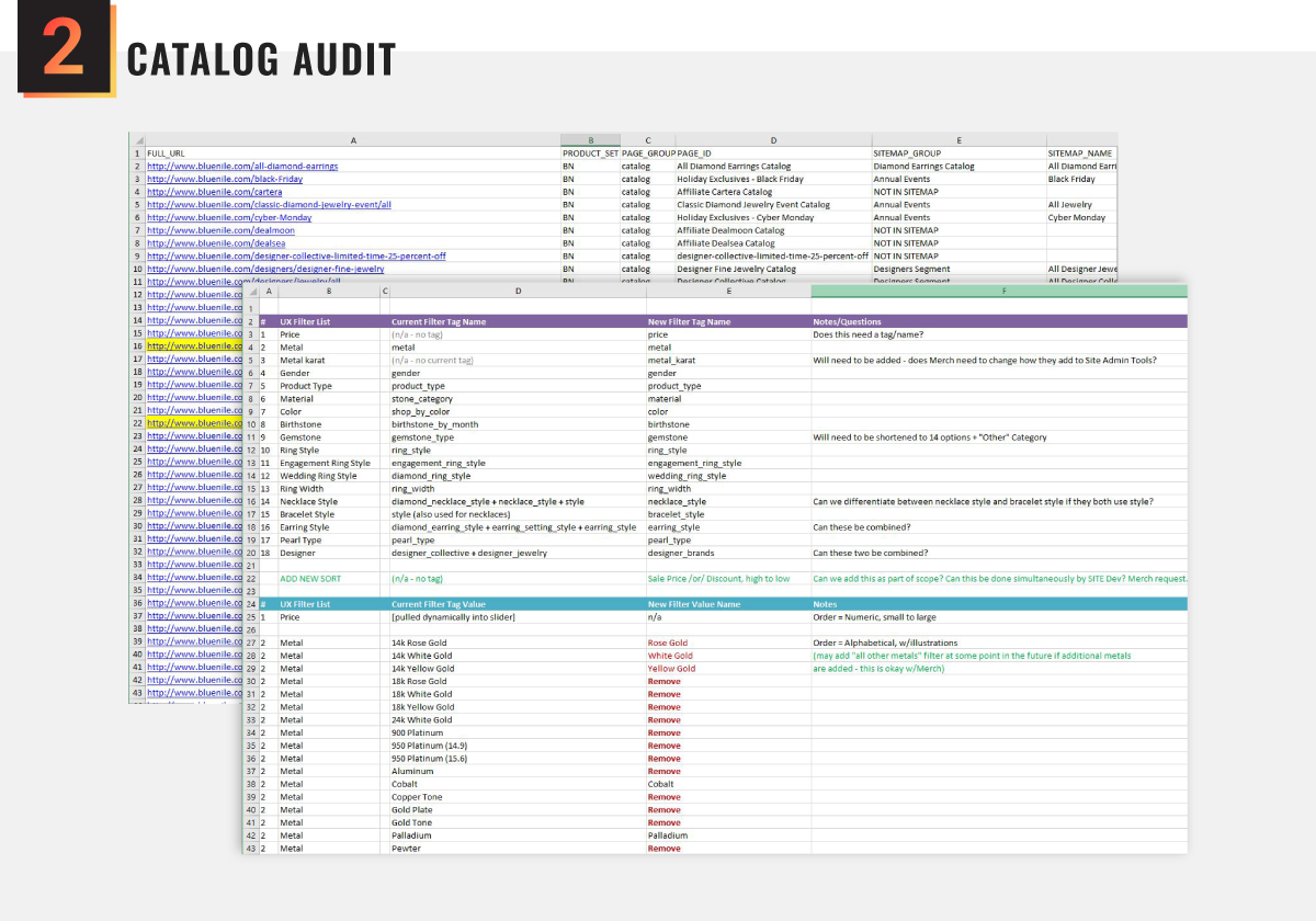 While creating a master list of every filter set, name, and icon for more than 350 catalog pages, I discovered multiple redundant catalog pages, missing filter sets, filter-count errors, and use-case errors—all of which needed to be addressed.