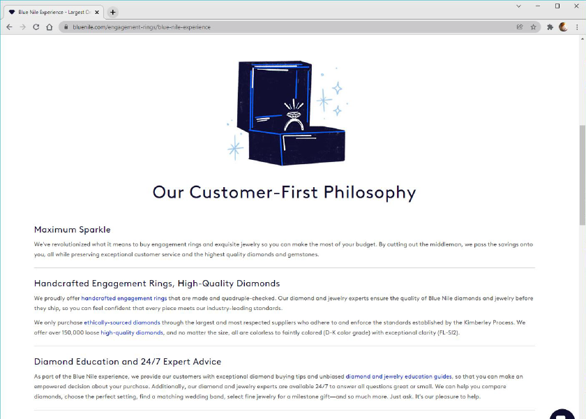 Blue Nile was an early innovator in the e-commerce space introducing the first customer-centric online buying model for diamonds, engagement rings, and jewelry.