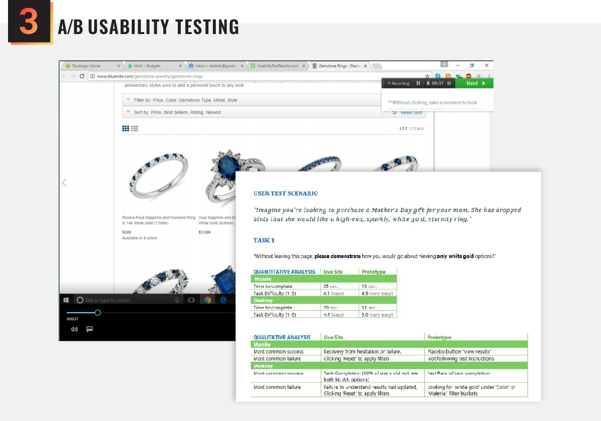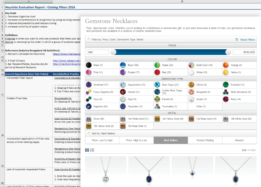 Overhauling Blue Nile’s e-commerce catalog filters resulting in a 25% decrease in bounce rate and an 80% decrease in user-error rates.